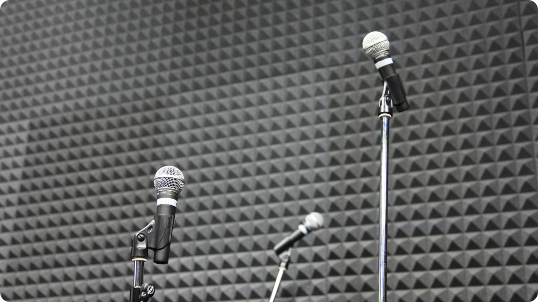 クリアに聞こえない…反響やノイズが多い空間では、レコーディングのクオリティが下がってしまいます。適切な吸音・遮音対策を行い、プロ仕様の音響環境を実現できます。